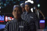 Hakim garis mengenakan kemeja lurik dan belangkon saat bertugas di pertandingan babak semifinal Blibli Indonesia Open 2019 di Istora Senayan, Jakarta, Sabtu (20/7/2019). Pada babak semifinal Blibli Indonesia Open 2019 ofisial pertandingan seperti wasit, service judge dan hakim garis mengenakan pakaian tradisional Indonesia sesuai konsep "Sport-Artainment" dari ajang kejuaraan dunia bulu tangkis tersebut serta untuk memperkenalkan kebudayaan Indonesia. ANTARA FOTO/Hafidz Mubarak A/wsj.