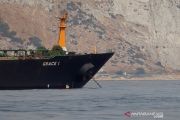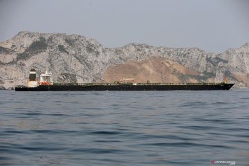 Kapal tanker minyak Iran Grace 1 lepas jangkar setelah ditangkap awal bulan ini oleh Marinir Kerajaan Inggris di lepas pantai wilayah Mediterania Inggris, di Selat Gibraltar, Spanyol Selatan, Spanyol, Sabtu (20/7/2019). Angkatan Laut Kerajaan Inggris menahan kapal tanker atas dugaan pelanggaran sanksi terhadap Suriah. ANTARA FOTO/REUTERS/Jon Nazca/wsj.