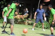 Mantan pesepak bola Manchester United Gary Neville (kedua kanan) bermain sepak bola bersama penyandang disabilitas saat mengunjungi Annika Linden Centre di Denpasar, Bali, Senin (22/7/2019). Dalam kunjungannya, Gary Neville memberikan coaching clinic dan motivasi kepada para penyandang disabilitas sekaligus mengamati aktivitas di sejumlah yayasan yang ada di pusat kegiatan sosial Annika Linden Centre tersebut. ANTARA FOTO/Fikri Yusuf/pras.