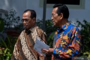 Menteri Perhubungan Budi Karya Sumadi berbincang dengan Gubernur DIY Sri Sultan Hamengkubuwono X seusai mengikuti pembukaan Rapat Koordinasi Nasional (Rakornas) BMKG tahun 2019 di Kompleks Istana Kepresidenan, Jakarta, Selasa (23/7/2019). Presiden meminta peran BMKG diperkuat dengan meningkatkan kerjasama dengan pemerintah pusat serta daerah guna memberikan pemahaman bencana kepada masyarakat dalam rangka mengurangi resiko bencana. ANTARA FOTO/Wahyu Putro A/hp.