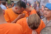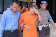 Polisi menggiring dua warga negara Australia David Dirk Johanes Van Lersel (tengah) dan William Roy Astillero Cabantog (belakang) dalam konferensi pers di Mapolresta Denpasar, Bali, Selasa (23/7/2019). Polisi menangkap kedua warga Australia itu di Bali karena tersangkut kasus narkoba dengan total barang bukti 1,12 gram kokain, ANTARA FOTO/Nyoman Hendra Wibowo/nym/hp.