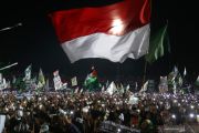 Ribuan umat Islam bersholawat sambil menyalakan lampu telepon genggam di stadion Brawijaya, Kota Kediri, Jawa Timur, Selasa (23/7/2019) malam. Sholawat yang dipimpin Habib Syech bin Abdul Qodir Assegaf tersebut guna memperingati hari jadi ke-1140 Kota Kediri. ANTARA FOTO/Prasetia Fauzani/aww.