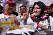 Direktur Pelayanan Haji Luar Negeri Kemenag, Sri Ilham Lubis mencicipi menu Selamat Datang yang disiapkan untuk jamaah haji Indonesia di Global Tastes, Jabal Nur, Mekkah, Arab Saudi, Kamis (25/7/2019). Perusahaan itu merupakan salah satu katering yang menyiapkan lebih dari 2000 porsi makanan untuk jamaah dari Embarkasi Sumatera setiap hari selama musim haji. ANTARA/Hanni Sofia/aa