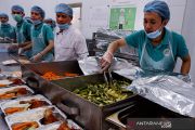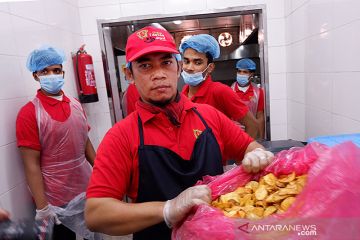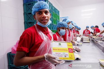 Sejumlah pekerja Dapur Cordoba melakukan pengemasan makanan untuk jamaah Indonesia di Mekkah, Arab Saudi, Kamis (25/7/2019). Perusahaan itu merupakan salah satu katering yang bertugas menyiapkan lebih dari 2.700 porsi makanan untuk jamaah asal Indonesia setiap hari selama musim haji. ANTARA/Hanni Sofia/aa