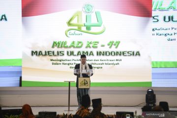 Wakil Presiden terpilih yang juga Ketua Umum Majelis Ulama Indonesia (MUI) Maruf Amin menyampaikan sambutan pada acara Tasyakur Milad Ke-44 MUI di Jakarta, Sabtu (27/7/2019). Acara tersebut mengusung tema Meningkatkan Pengkhidmatan dan Kemitraan MUI dalam Rangka Penguatan Ukhuwah Islamiyah dan Persatuan Bangsa. ANTARA FOTO/Andi/dr/hp.