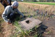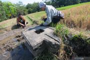 Sejumlah pegiat cagar budaya dari Klaten Heritage Community (KHC) mendata ukuran temuan yoni di Ngabean, Karanganom, Klaten, Jawa Tengah, Selasa (30/7/2019). Pendataan yoni dan batu bata era Mataram kono di area lahan pertanian tersebut dilakukan terkait rencana pembangunan ruas tol Solo-Yogyakarta di daerah tersebut dan diduga masih ada situs yang terpendam. ANTARA FOTO/Aloysius Jarot Nugroho/foc.