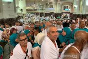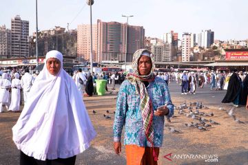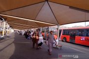 Jamaah Indonesia berjalan menuju pangkalan bus shalawat di Terminal Syeib Amir yang akan mengangkut mereka menuju pondokan masing-masing usai melakukan ibadah di Masjidil Haram Mekkah, Selasa (30/7/2019). Kawasan Masjidil Haram semakin padat dalam beberapa waktu terakhir menjelang puncak musim haji dimulai 8 Dzulhijah 1440 H atau bertepatan 9 Agustus 2019. ANTARA/Hanni Sofia/aa