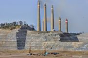 Sejumlah pekerja beraktivitas di proyek pembangunan PLTU Suralaya Unit X di Suralaya, Cilegon, Banten, Senin (5/8/2019). Jubir Unit Pembangkitan PLTU Suralaya Asep Muhendar mengungkapkan setelah adanya gangguan interkoneksi di Ungaran, operasional PLTU Suralaya dihentikan untuk menghindari kerusakan, dan saat ini telah dioperasikan kembali empat unit pembangkit guna memulihkan kembali secara bertahap suplai listrik ke jaringan Jawa, Madura dan Bali. ANTARA FOTO/Asep Fathulrahman/wsj.