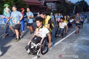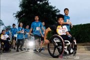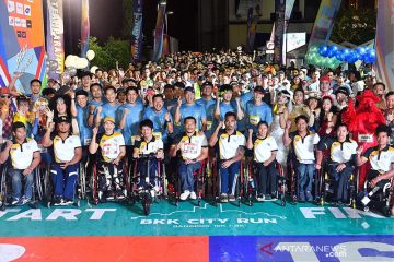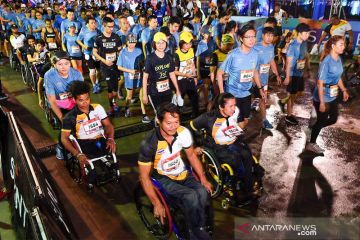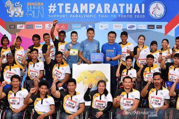 Sejumlah atlet difabel bersama peserta lainnya saat mengikuti lomba maraton 8 kilometer dan 16 kilometer di Jalan Chaiyapruek, Bangkok, Thailand, Minggu pagi (4/8/2019). Di antara 3000 peserta tersebut terdapat 40 atlet difabel yang turut mengambil bagian pada ajang pengumpulan donasi tersebut. ANTARA/HO-Paralimpik Komite Thailand/aa.