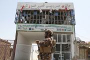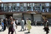 Warga berjalan di depan sebuah gedung yang kacanya pecah di lokasi bom mobil meledak di Kota Kabul, Afghanistan, Rabu (7/8/2019). Taliban mengklaim bertanggung jawab atas bom mobil bunuh diri yang menyerang sebuah pos polisi di Kabul, yang menurut informasi dari aparat pemerintah menyebabkan 14 orang tewas dan 145 orang lainnya luka-luka. ANTARA FOTO/REUTERS/Omar Sobhani/wsj.