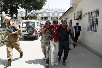 Warga membantu korban luka-luka menuju rumah sakit akibat bom mobil meledak di Kota Kabul, Afghanistan, Rabu (7/8/2019). Taliban mengklaim bertanggung jawab atas bom mobil bunuh diri yang menyerang sebuah pos polisi di Kabul, yang menurut informasi dari aparat pemerintah menyebabkan 14 orang tewas dan 145 orang lainnya luka-luka. ANTARA FOTO/REUTERS/Mohammad Ismail/wsj.