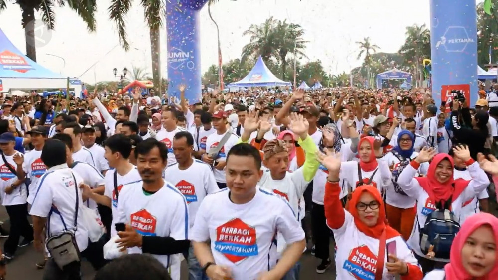ANTARA - PT. Pertamina Persero menggelar program Berbagi Berkah My Pertamina di Kota Tangerang, Banten, dengan bentuk acara jalan santai bersama. Kegiatan yang dilaksankan pada Minggu (16/2) dihadiri lebih kurang 5.000 peserta ini, bertujuan untuk mengajak masyarakat Kota Tangerang menggunakan BBM sehat yang ramah lingkungan. (Agung Andhika Indrawan/Chairul Fajri/Rinto A Navis)