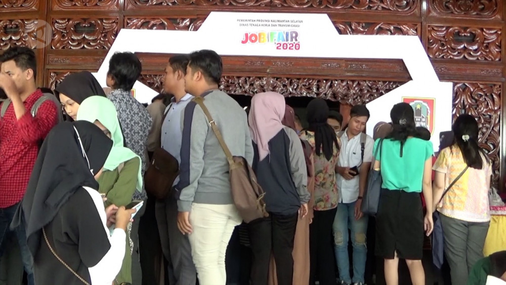 ANTARA - Pemerintah Provinsi Kalimantan Selatan menggandeng 57 perusahaan guna menawarkan 2.900 lowongan pekerjaan bagi pencari kerja. Kegiatan yang dikemas dalam program job fair 2020 dilaksanakan selama tiga hari di Gedung Sultan Suriansyah Banjarmasin yang akan berakhir pada 28 Februari 2020. (Latif Thohir/Satrio Giri Marwanto/Perwiranta)