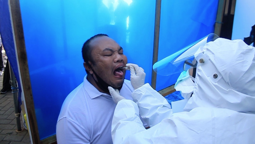 ANTARA - Sebanyak 750 warga di Banjarmasin, mengikuti tes usap massal yang diadakan Pemerintah Kota Banjarmasin sebagai langkah cepat menangani penyebaran COVID-19 agar tidak meluas. Diharapkan orang yang terpapar COVID-19 dapat segera ditangani, sehingga tidak berkeliaran dan menimbulkan klaster-klaster baru di kota ini .(Latif Thohir/Rayyan/Risbeyhi)