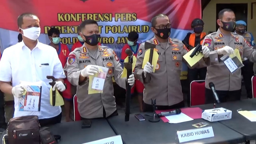 ANTARA - Direktorat Kepolisian Air dan Udara (Ditpolairud) Polda Metro Jaya menangkap empat perompak yang beraksi di wilayah perairan utara Pulau Sebira, Kepulauan Seribu, DKI Jakarta. Kabid Humas Polda Metro Jaya Komisaris Besar Polisi Yusri Yunus, Senin (20/7), menjelaskan para pelaku telah beraksi selama dua tahun. (Fauzi/Chairul Fajri/Edwar Mukti Laksana)