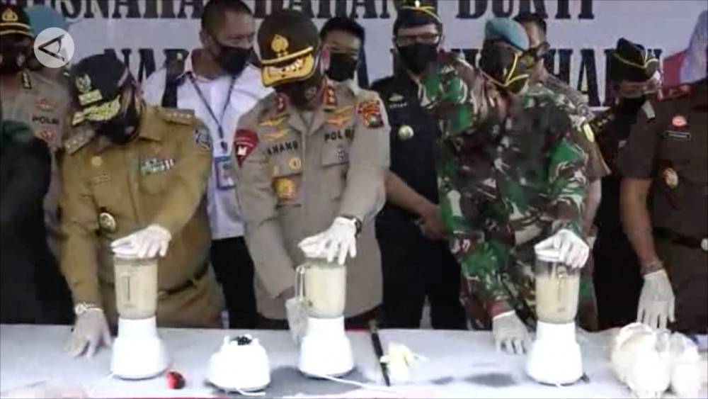 ANTARA - Polda Kepulauan Bangka Belitung, pada Senin 7 September 2020, melakukan pemusnahan 211,2 kilogram narkotika jenis sabu-sabu. Narkotika senilai Rp.160 miliar tersebut merupakan barang bukti yang berhasil diungkap Polda Babel pada 12 Juli 2020. (Meriyanti/Dudy Yanuwardhana/Perwiranta)