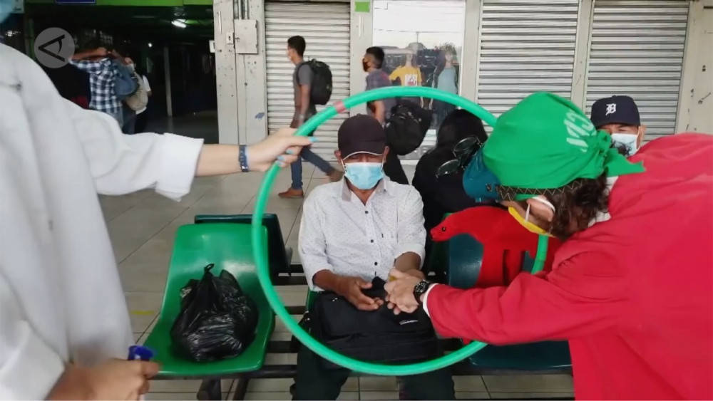 ANTARA - Seni bisa menyelamatkan nyawa! Para seniman pertunjukan urban di El Salvador bergabung dalam aksi memerangi virus corona baru dan menggalakkan kesadaran tentang penyakit ini dengan cara yang unik.(XINHUA/Siti Zulaikha/Satrio Giri/Sizuka)