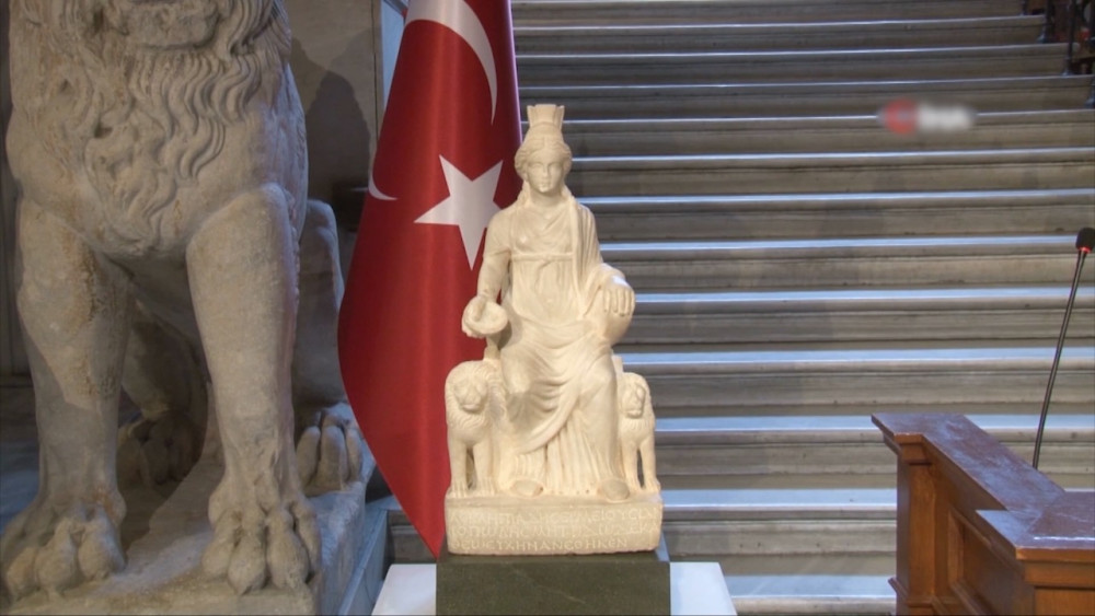 ANTARA - Patung Cybele, simbol kelimpahan dan kesuburan, yang berusia 1.700 tahun kembali ke Turki setelah diselundupkan ke luar negeri hampir 60 tahun yang lalu, menurut Menteri Kebudayaan dan Pariwisata Turki Mehmet Nuri Ersoy pada akhir pekan kemarin.(XINHUA/Siti Zulaikha/Andi Bagasela/Sizuka)