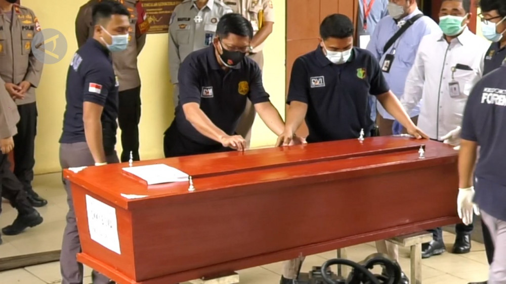 ANTARA - Tim Disaster Victim Identification (DVI) Polri menyerahkan jenazah korban kecelakaan Sriwijaya Air SJ-182 bernama Okky Bisma di RS Polri Kramat Jati, Kamis (14/1). Jenazah pramugara Sriwijaya Air ini diterima langsung oleh pihak keluarga dan akan segera dimakamkan di TPU Balekambang, Jakarta Timur. (Kuntum Khaira Riswan/Samsyul Rizal/Agha Yuninda Maulana/Gracia Simanjuntak)