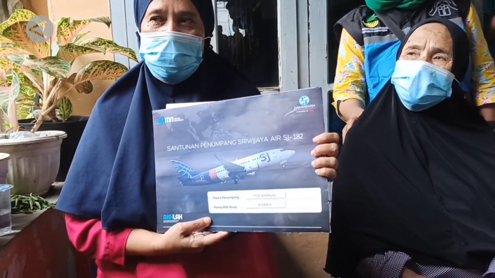 ANTARA - Keluarga korban jatuhnya pesawat Sriwijaya Air SJ-182 di perairan Kepulauan Seribu, yang berdomisili di Pangkalpinang, Bangka Belitung, menerima santunan dari Jasa Raharja, (18/01). Bersama Gubernur Bebel, Erzaldi Rosman, Jasa Raharja memberikan santunan kepada orang tua Rosi Wahyuni sebagai ahli waris. (Meriyanti/Soni Namura/Farah Khadija)