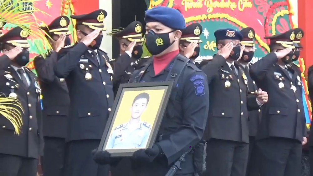 ANTARA - Pihak Kepolisian Daerah Sulawesi Tengah, menggelar upacara penghormatan terakhir kepada Briptu Herlis. Anggota Kepolisian yang gugur dalam kontak tembak dengan kelompok Mujahidin Indonesia Timur (MIT) Poso. Upacara penghormatan dilaksanakan di Markas Komando Brimob Polda Sulteng, Kamis (04/03).(Rangga Musabar/Rayyan/Sizuka)