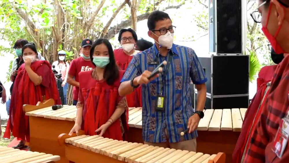 ANTARA - Menteri Pariwisata dan Ekonomi Kreatif/Kepala Badan Pariwisata dan Ekonomi Kreatif, Sandiaga Salahuddin Uno melakukan kunjungan ke Desa Wisata Marinsow. Menparekraf Sandiaga Uno, memastikan desa wisata menjadi salah satu program unggulan dalam pengembangan Kawasan Ekonomi Khusus (KEK) Likupang yang merupakan satu dari lima destinasi super prioritas. (Amita Putri Caesaria/Satrio Giri Marwanto/Farah Khadija)
