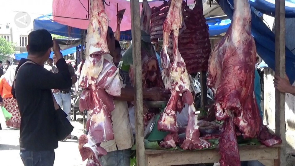 ANTARA - Harga daging sapi dan kerbau di Pasar Tradisional Lhokseumawe, Aceh, menembus harga Rp180 ribu per kilogramnya atau naik di kisaran Rp50 ribu dibanding hari normal. Lonjakan harga daging tersebut dipicu tradisi Meugang yaitu budaya masyarakat Aceh berbagi daging jelang hari raya. (Try Vanny S/Satrio Giri Marwanto/Anom Prihantoro)