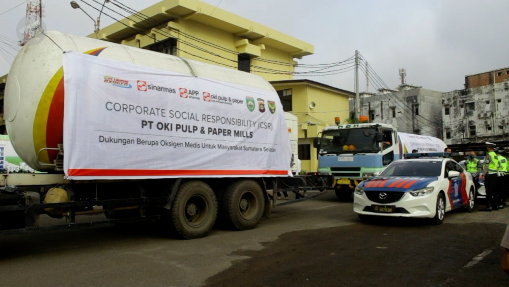 ANTARA - Pemerintah Provinsi Sumatera Selatan dan Polda mendistribusikan sebanyak 30 ton oksigen, Senin (12/7), ke sejumlah rumah sakit rujukan COVID-19 di Kota Palembang. Hal ini merupakan langkah cepat dalam mengantisipasi kelangkaan oksigen untuk menangani pasien COVID-19. Pemprov dan Polda Sumsel menggandeng pihak korporasi melalui program CSR dengan berpartisipasi melalui pengadaan oksigen. (Evan Ervani/Rayyan/Farah Khadija)