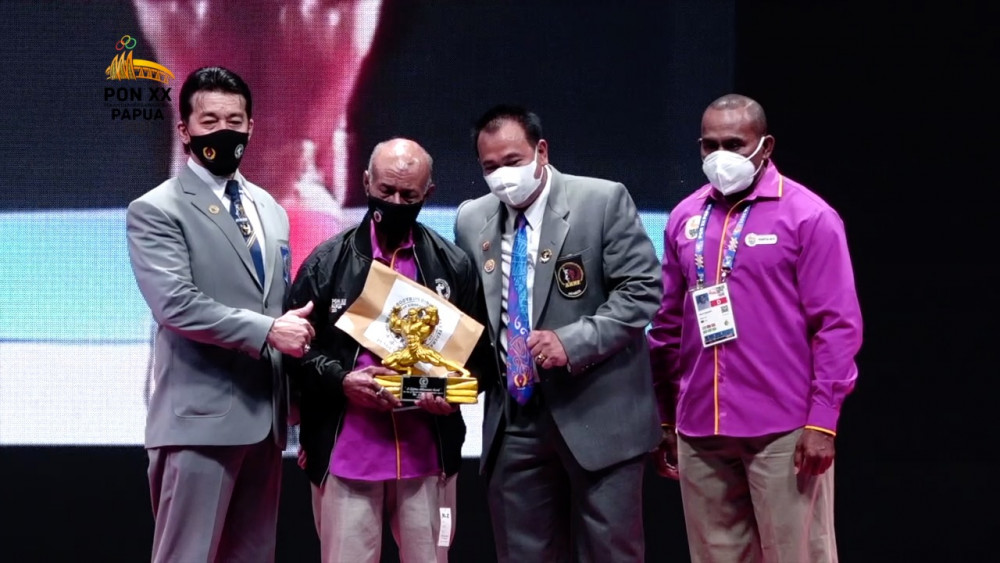 ANTARA - PON XX yang digelar di Papua 2-15 Oktober 2021 menjadi kebanggaan tersendiri bagi legenda binaraga Indonesia, Levi Rumbewas. Atlet asal Papua ini terharu akan penghargaan dari Pengurus Pusat Perkumpulan Binaraga Fitness Indonesia (PP PBFI) pimpinan Irwan Alwi atas dedikasinya di dunia binaraga. Ia berharap atlet muda dapat mengejar prestasi dengan latihan secara konsisten, menjaga pola makan dan mengonsumsi suplemen yang diperbolehkan. (Erlangga Bregas Prakoso/Agha Yuninda Maulana/Gracia Simanjuntak)