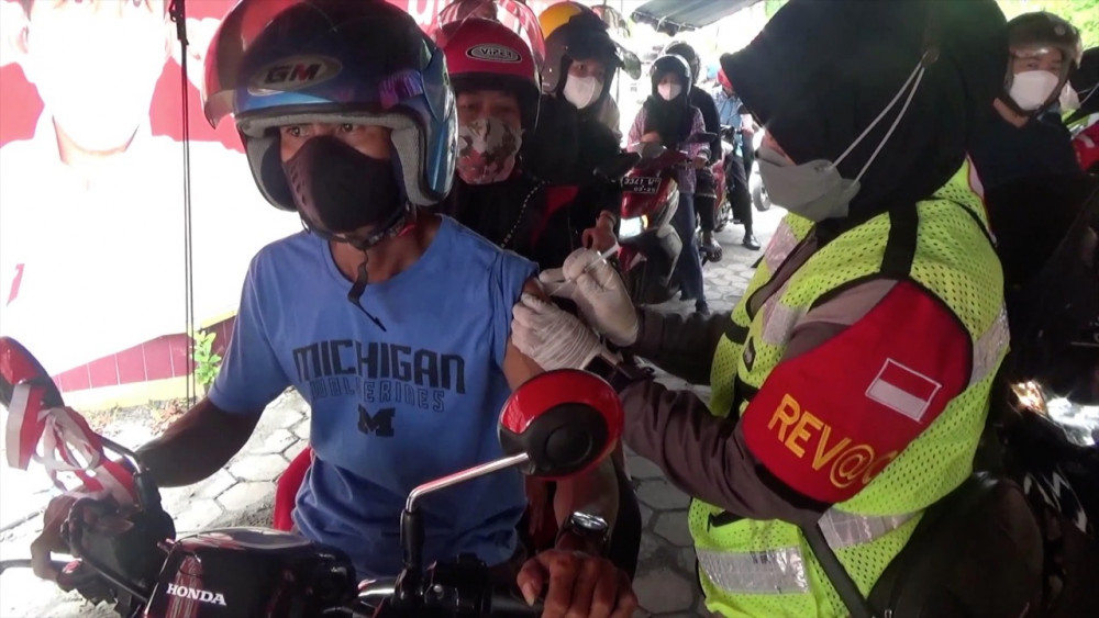 ANTARA - Saat ini vaksinsasi COVID-19 di Kalimantan Tengah telah mencapai 92 persen atau peringkat dua secara nasional. Untuk terus meningkatkan percepatan vaksinasi, dalam rangka menuju kekebalan komunitas, Kepolisian Daerah Kalimantan Tengah (Polda Kalteng) beserta jajarannya, untuk kembali menggelar vaksinasi massal tanpa turun, Rabu (6/10). (Redianto Tumon Sp/Chairul Fajri/Farah Khadija)