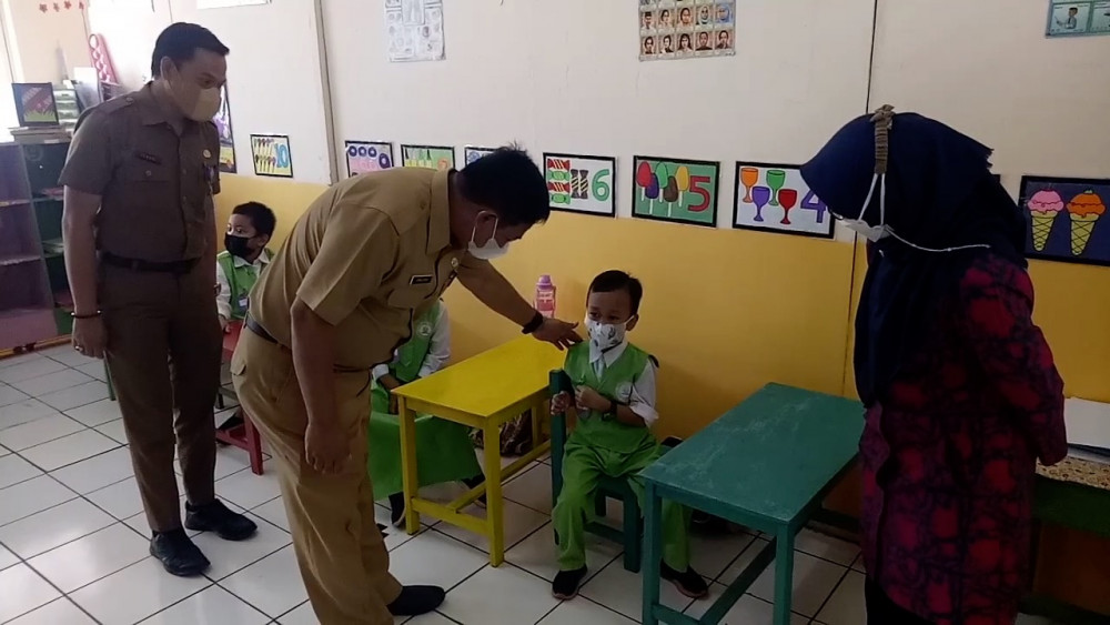 ANTARA - Dinas Pendidikan Kota Tangerang, Banten, telah memperbolehkan sekolah di tingkat Pendidikan Anak Usia Dini dan Taman Kanak-Kanak (TK) menggelar Pembelajaran Tatap Muka (PTM) secara terbatas. Tahap pertama PTM terbatas, dibuka sebanyak 216 TK dan 187 PAUD, Selasa (16/11). (Agung Andhika Indrawan/Yovita Amalia/Farah Khadija)
