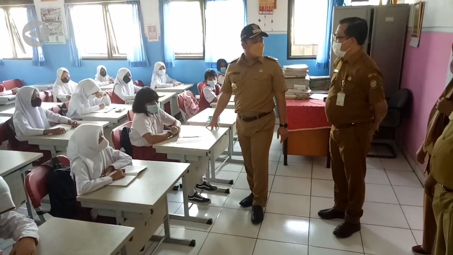 ANTARA -Pemerintah Kota (Pemkot) Tangerang melalui Dinas Pendidikan mulai menggelar Pembelajaran Tatap Muka (PTM) 100 persen hari ini, Senin (3/1). Wali Kota Tangerang, Arief Wismansyah pun meninjau langsung proses PTM tersebut, untuk melihat penerapan protokol kesehatan di dalam ruang kelas.