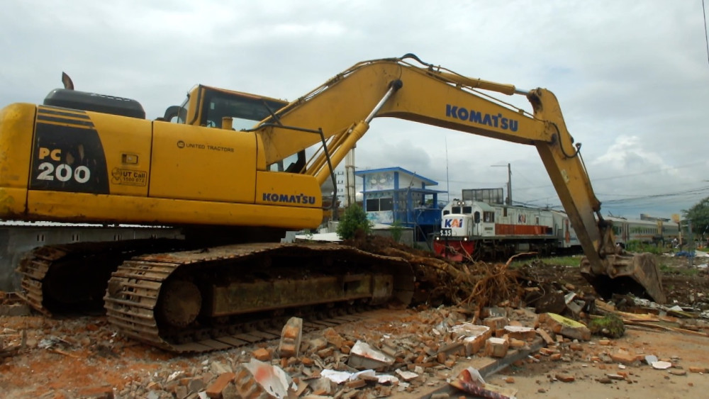 ANTARA - PT Kereta Api Indonesia (Persero) Daerah Operasi 9 Jember, Jawa Timur membongkar sebanyak 36 bangunan liar di Ruang Pengawasan Jalur Kereta Api (Ruwasja) pada Kamis, 20 Januari. Bangunan atau kios dibangun warga untuk berjualan di sekitar pertokoan Kecamatan Kaliwates. Namun dengan tujuan peningkatan keselamatan dan keamanan perjalanan kereta api bangunan tak berizin itu dibongkar.(Hamka Agung Balya/Andi Bagasela/Sizuka)