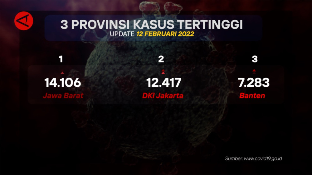 ANTARA - Satgas Percepatan Penanganan COVID-19 mencatat pada Sabtu (12/2) Jawa Barat menduduki provinsi pertama penyumbang kasus harian COVID-19 dengan penambahan 14.106 kasus. Adapun kasus positif harian nasional bertambah 55.209 kasus disertai dengan penambahan pasien sembuh 32.570 orang dan 107 meninggal. (Rina Nur Anggraini/Fahrul Marwansyah/Aloysius Puspandono/Saras Krisvianti)