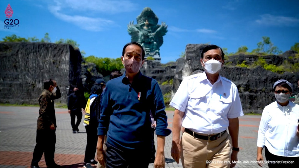 ANTARA - Presiden Joko Widodo meninjau Garuda Wisnu Kencana (GWK) Cultural Park, Kabupaten Badung, Bali, Jumat (25/2). Hal tersebut dilakukan untuk memastikan persiapan sarana dan prasarana dalam menyambut tamu delegasi KTT G20. Adapun GWK Cultural Park merupakan salah satu tempat untuk jamuan makan malam para delegasi KTT G20 pada 15-16 November 2022. (Erlangga Bregas Prakoso/Andi Bagasela/Gracia Simanjuntak)