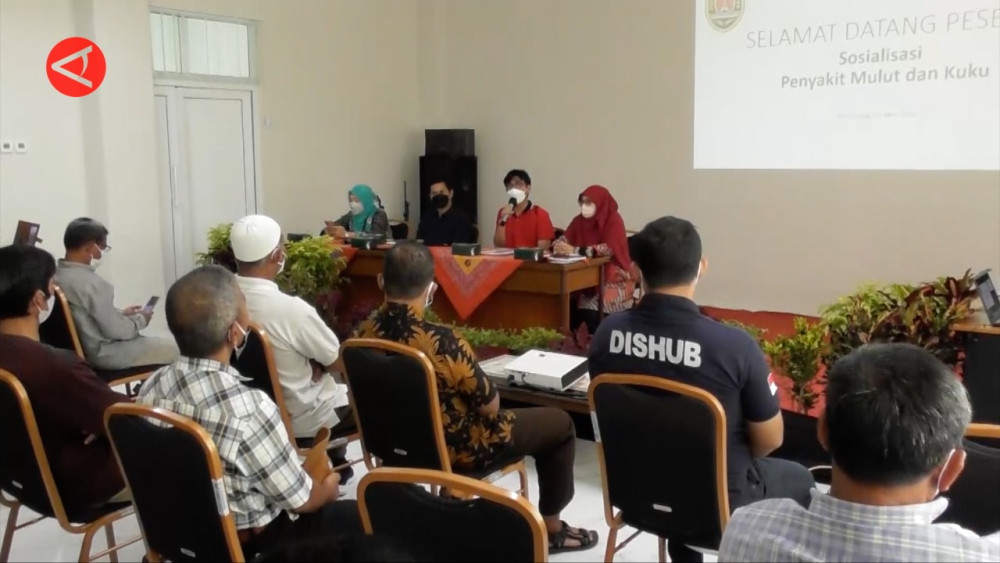 ANTARA - Dinas Pertanian Kota Semarang, Jawa Tengah melakukan sosialisasi komunikasi informasi dan edukasi (KIE) biosecurity kepada pemangku kepentingan dalam bidang peternakan seperti penyuluh pertanian hingga peternak terkait antisipasi penyebaran penyakit mulut dan kuku pada ternak, Jumat (13/05). Pemantauan ke peternakan dan edukasi terus dilakukan menyusul ditemukannya sapi dan kambing bergejala seperti penyakit mulut dan kuku.(Fx. Suryo Wicaksono/Sandi Arizona/Sizuka)