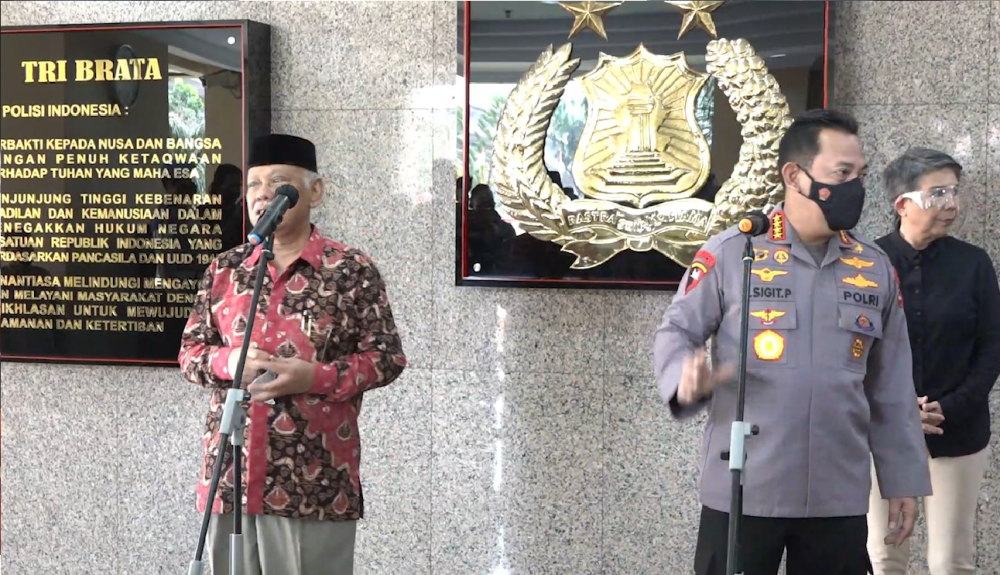 ANTARA - Polri dan Dewan Pers akan bekerja sama bertukar informasi guna mencegah terjadinya polarisasi yang akan berpotensi memecah belah persatuan akibat penggunaan politik identitas saat Pemilu 2024. Kapolri Jenderal Pol Listyo Sigot Prabowo dan Ketua Dewan Pers Azyumardi Azra, di Jakarta, Selasa (21/6), sepakat untuk mengembangkan jurnalisme positif lewat lembaga pendidikan yang ada di lingkungan Polri. (Putri Hanifa/Rizky Dhermawan/Nusantara Mulkan)
