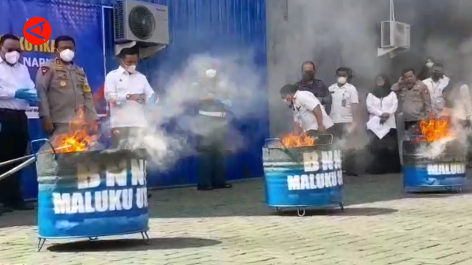 ANTARA - Badan Narkotika Nasiona Provinsi (BNNP) Maluku Utara (Malut), Rabu (22/6), memusnahkan narkotika jenis ganja seberat 5.500 gram di halaman kantornya, Kelurahan Kalumata, Ternate Selatan. Yang merupakan hasil temuan barang bukti narkotika di berbagai agen jasa pengiriman sejak 2017-2021. (Harmoko Minggu/Arif Prada/Nusantara Mulkan)