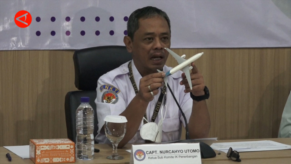 ANTARA - Komite Nasional Keselamatan Transportasi (KNKT), Kamis (10/11), menyampaikan hasil investigasi atas penyebab kecelakaan pesawat Sriwijaya Air Boeing 737-500 dengan nomor penerbangan SJ-182 di perairan Kepulauan Seribu pada 2021 lalu. Untuk itu, seperti disampaikan Kepala Sub-Komite Investigasi Kecelakaan Penerbangan Penerbangan KNKT Kapten Nurcahyo Utomo di Jakarta, Kementerian Perhubungan teah melakukan sejumlah langkah. (Azhfar Robbani/Arif Prada/Nusantara Mulkan)