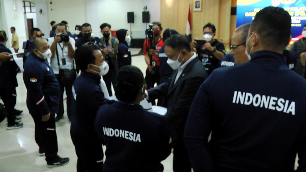 ANTARA - Menteri Pemuda dan Olahraga (Menpora) Zainudin Amali berpesan pada lifter Indonesia agar berkompetisi dengan sportif. Hal itu disampaikan Menpora dalam acara pelepasan atlet pelatnas cabang olahraga angkat besi untuk mengikuti Kejuaraan Dunia Angkat Besi 2022 di Bogota, Kolombia. (Egan Suryahartaji/Rizky Bagus Dhermawan/Gracia Simanjuntak)