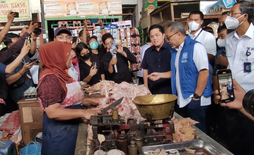 ANTARA - Menteri Perdagangan Zulkifli Hasan bersama menteri Badan Usaha Milik Negara (BUMN) Erick Thohir meninjau Pasar Rasamala, Kota Semarang, Jumat (2/12). Peninjauan di pasar tradisional ini untuk memastikan komoditas pangan tetap aman dan terjangkau masyarakat, terlebih menjelang perayaan Natal dan Tahun Baru. (Fx. Suryo Wicaksono/Rizky Bagus Dhermawan/Farah Khadija)