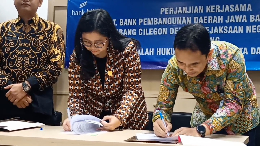 ANTARA -PT Bank Pembangunan Daerah Jawa Barat dan Banten (BJB) cabang Kota Cilegon melakukan penandatanganan perjanjian kerja sama dengan Kejaksaan Negeri Cilegon tentang penanganan masalah hukum bidang perdata dan tata usaha negara, pada Jumat (17/ 2). Kerja sama tersebut dilakukan sebagai komitmen BJB Cabang Cilegon menjalankan fungsi intermediasi perbankan, salah satunya dalam menghadapi puluhan debitur bermasalah.(Susmiatun Hayati/Andi Bagasela/Ludmila Yusufin Diah Nastiti)