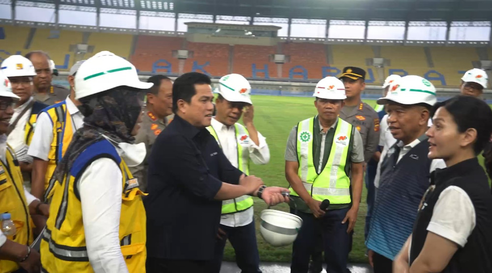 ANTARA - Menteri Pemuda dan Olah Raga Zainudin Amali meninjau Stadion Si Jalak Harupat, di Kabupaten Bandung, Sabtu (11/03). Peninjauan dilakukan untuk memastikan kesiapan Stadion Si Jalak Harupat menjadi salah satu "venue" penyelenggaraan piala dunia U-20. (Dian Hardiana/Rizky Bagus Dhermawan/Feny Aprianti)