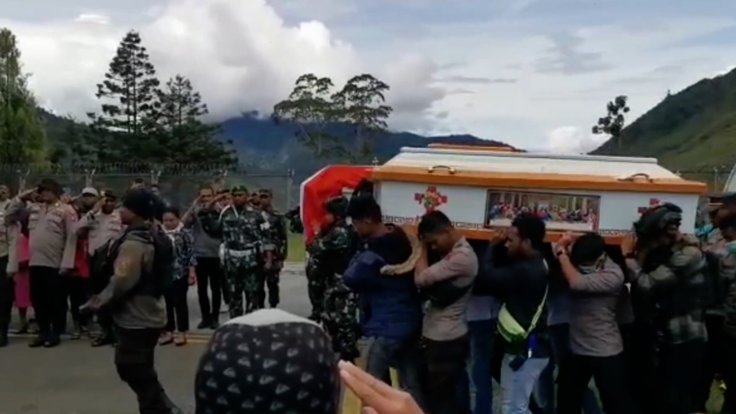 ANTARA - Dua jenazah Anggota TNI-Polri yang menjadi korban penembakan Kelompok Kriminal Bersenjata (KKB) saat mengamankan ibadah shalat tarawih di Distrik Ilu, Kabupaten Puncak Jaya, Papua Tengah dievakuasi ke Jayapura pada Minggu (26/3). Proses evakuasi ini menjadi langkah awal untuk berikutnya kedua jenazah dimakamkan di kota masing-masing. (Laksa Mahendra/Yovita Amalia/Ardi Irawan)
