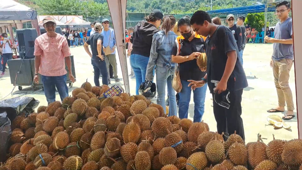 ANTARA - Penggalangan dana pembangunan gedung Gereja Elim Toisapu dilakukan secara unik, yakni melalui kegiatan festival makan durian yang diselenggarakan warga Maluku di Kota Jayapura, Papua, Selasa (25/4). Kegiatan amal festival ini membantu mewujudkan pembangunan gereja sekaligus sebagai ajang pertemuan antara warga Maluku di Kota Jayapura, Papua. (Laksa Mahendra/Arif Prada/Rully Yuliardi Achmad)