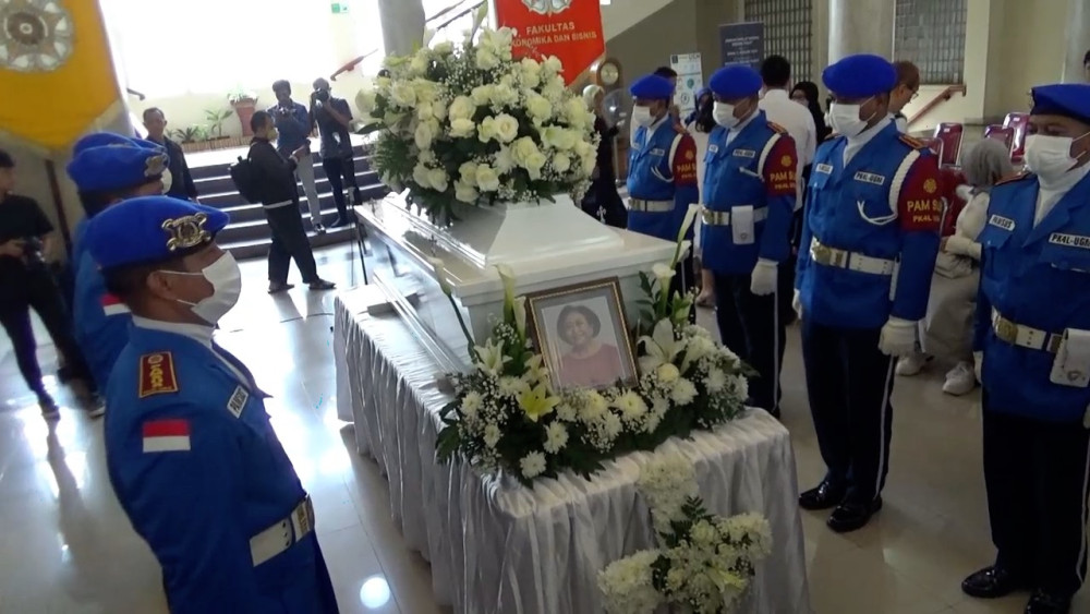 ANTARA - Sejumlah keluarga, sahabat dan kolega dari UGM memberi penghormatan terakhir kepada Sri Adiningsih di Balairung Universitas Gadjah Mada Yogyakarta, Minggu (18/6). Dari Wakil Presiden ke-11 hingga menteri kabinet Jokowi menilai sosok Sri Adiningsih merupakan ekonom wanita Indonesia yang berintegritas tinggi. (Imam Prasetyo Nugroho/Chairul Fajri/Farah Khadija)