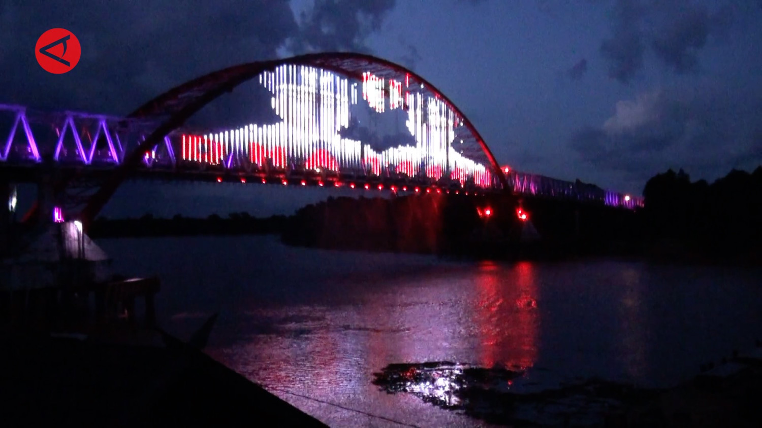 ANTARA - Pemerintah Provinsi Kalimantan Tengah mempercantik Jembatan Kahayan untuk tampil sebagai ikon baru di Kota Palangka Raya. Lampu-lampu berwarna warni tampil dengan konsep Water Front City di malam hari, mampu menampilkan beragam ornamen, simbol, dan pesan serta menjadi air mancur yang memukau jika dilihat dari kejauhan. Sebagai sebuah ikon baru, kehadirannya mengundang kekaguman warga Palangka Raya dan wisatawan. (Redianto Tumon Sp/Fahrul Marwansyah/Rinto A Navis)