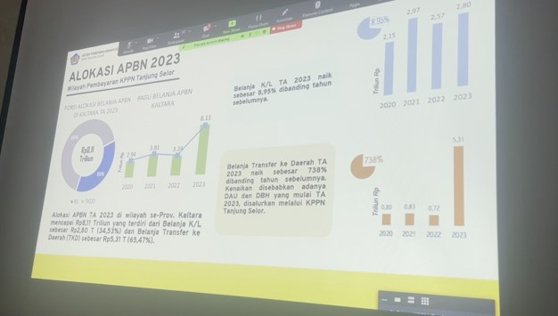 ANTARA - Realisasi Anggaran Pendapatan Belanja Negara (APBN) semester I-2023 di wilayah kerja Kantor Pelayanan Perbendaharaan Negara (KPPN) Tanjung Selor, Kalimantan Utara, telah mencapai 43,34 persen. Kepala KPPN Tanjung Selor Juanda, Kamis (20/9), menyatakan masih ada sejumlah satuan kerja yang realisasi APBN masih cukup rendah. (Cica Andriyani/Rizky Dhermawan/Nusantara Mulkan)