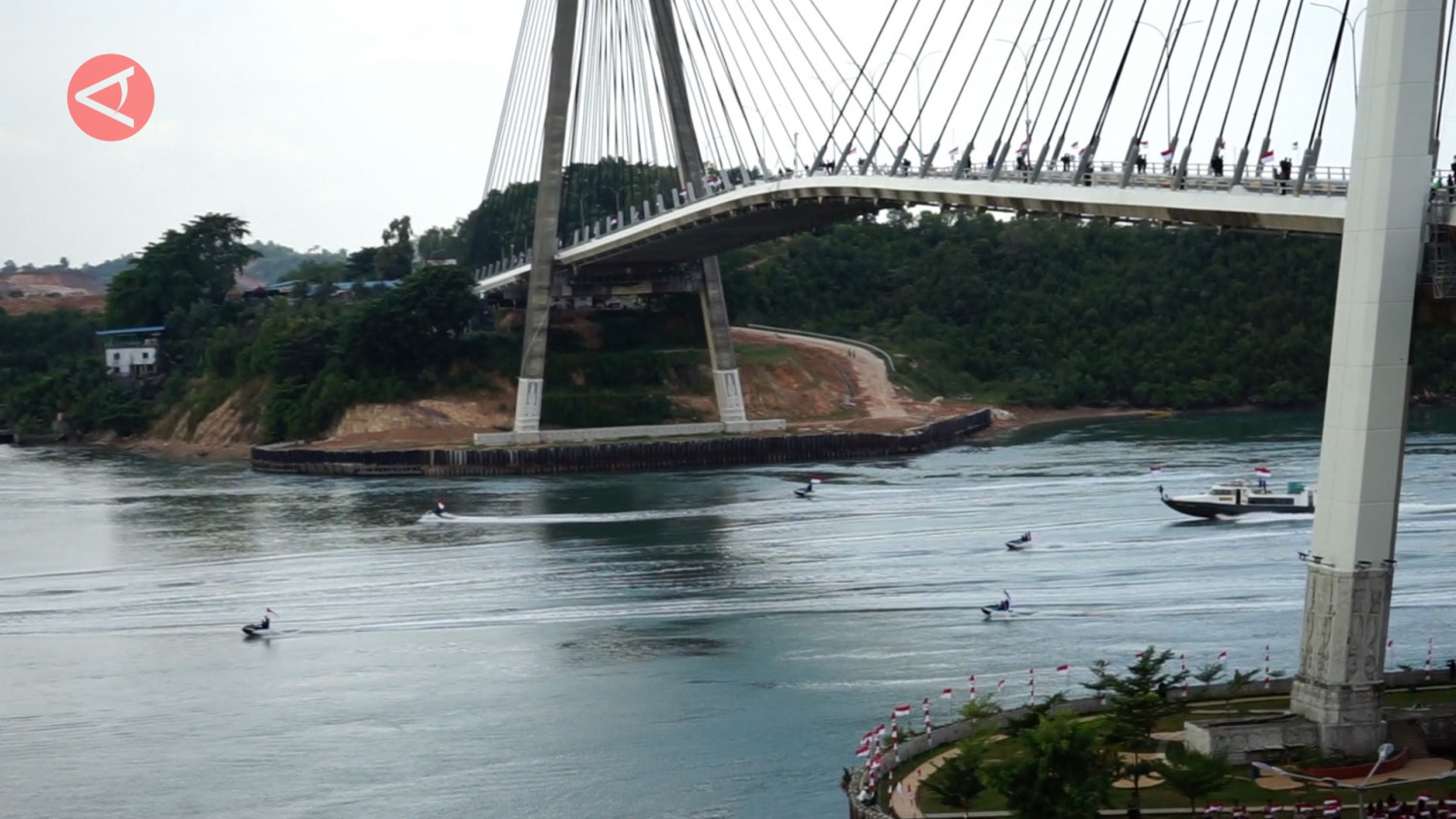ANTARA - Polda Kepulauan Riau mengibarkan bendera di sepanjang Jembatan 1 Barelang dalam menyambut HUT Ke-78 Republik Indonesia, Rabu (16/8). Dipilihnya Jembatan I Barelang karena jembatan ini diprakarsai oleh Presiden RI Ke-3, B.J Habibie sebagai simbol pembangunan di Kepri. (Holdan Parlaungan/Sandy Arizona/Rully Yuliardi Achmad)