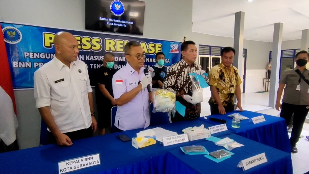 ANTARA - Badan Narkotika Nasional (BNN) mengamankan dua kurir narkotika dengan barang bukti sabu seberat 1 kilogram. Kepala BNNP Jateng Heru Pranoto dalam konpers Jumat (8/9) menyebut keduanya ditangkap di Desa Sindon, Kecamatan Ngemplak, Kabupaten Boyolali pada 25 Agustus lalu. (Denik Apriyani/Chairul Fajri/Ludmila Yusufin Diah Nastiti)